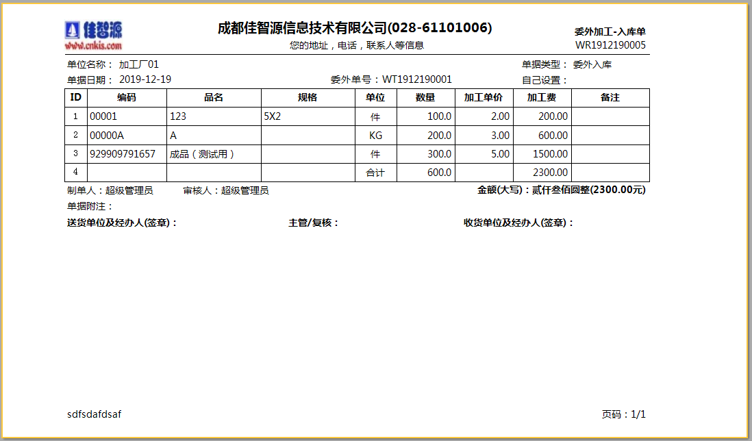 委外加工單,對(duì)應(yīng)的入庫(kù)單(點(diǎn)擊圖片可查看清晰大圖)