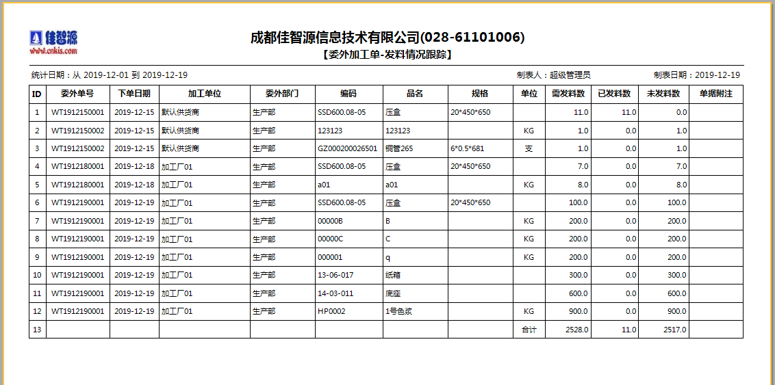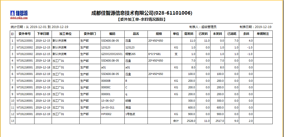 委外加工單,發(fā)材料給加工商后,在加工商那里的余料情況查詢(點(diǎn)擊圖片可查看清晰大圖)