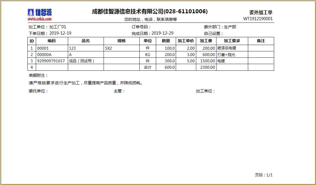 委外加工單界面(點(diǎn)擊圖片可查看清晰大圖)